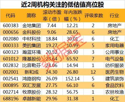 从近两周机构评级看,机构最看好全球营养品龙头公司新和成,136只机构看好的高位股中,低估值公司仅有12只。鸿路钢构今日跌停,机构逆市买入。