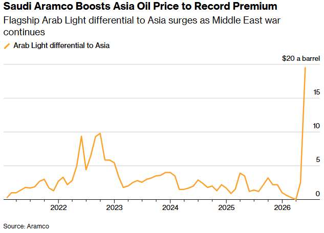 沙特阿美提高亚洲原油价格,使其溢价创历史新高