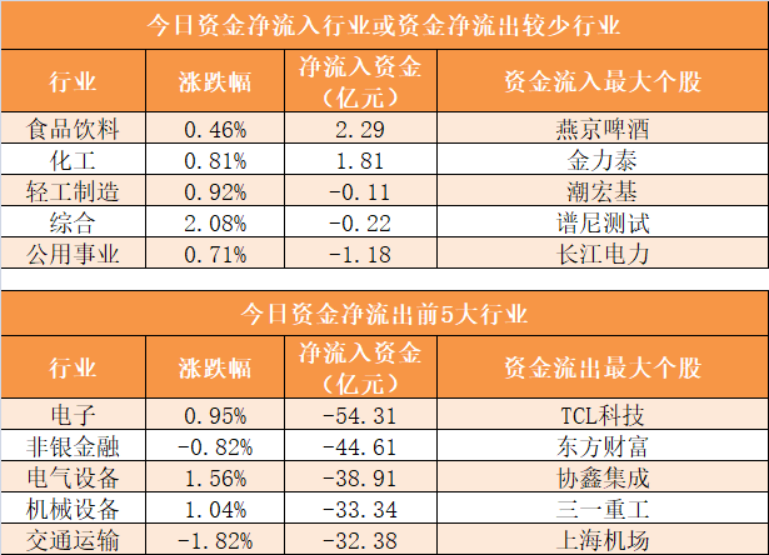 3、食品饮料行业净流入2.29亿元居首