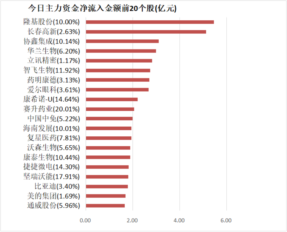 5、隆基股份主力资金净流入5.45亿元居首