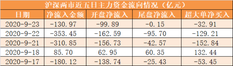今日沪深两市主力资金开盘净流出99.89亿元,尾盘净流出0.15亿元,两市全天资金净流出130.97亿元。