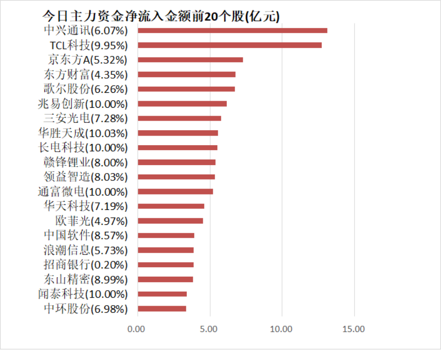 今日沪深两市主力资金开盘净流入106.78亿元,尾盘净流入26.68亿元,两市全天资金净流入246.07亿元。