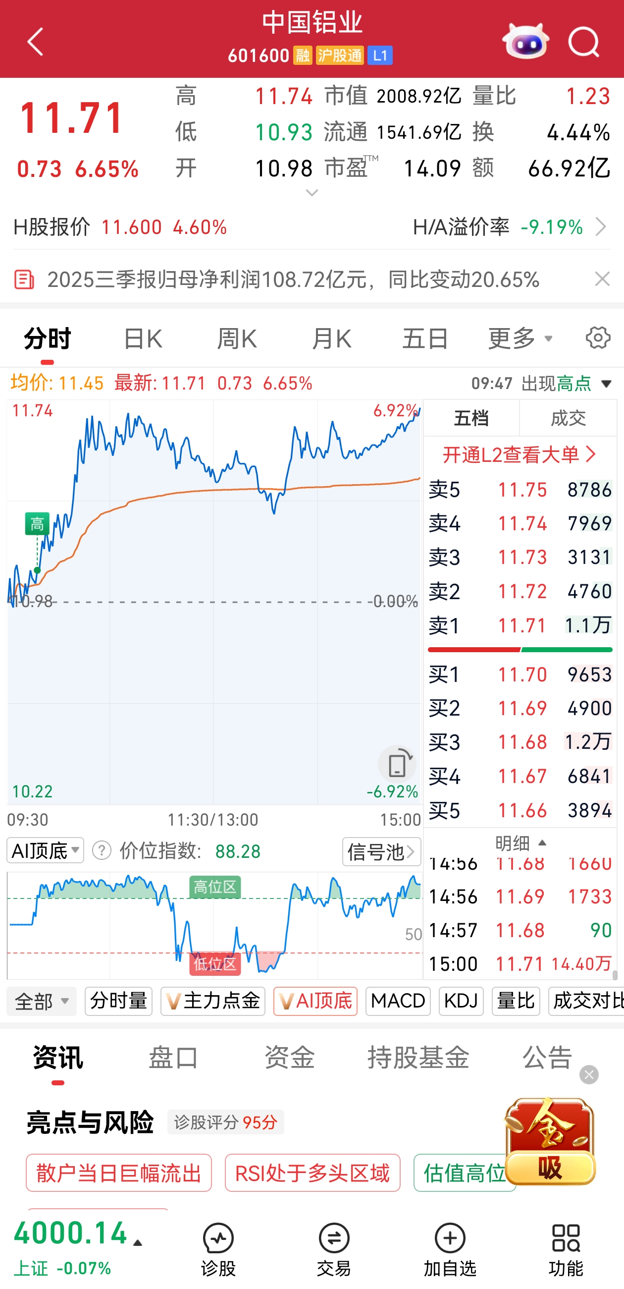 一方面,建筑材料、化工、机械制造等周期板块龙头股纷纷走强,中国铝业、冀凯股份、耀皮玻璃等大涨。中国铝业涨超6%,股价创历史新高,最新市值约2008亿元。