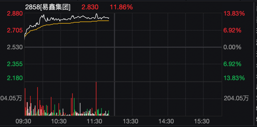 港股易鑫集团盘中大涨逾13%