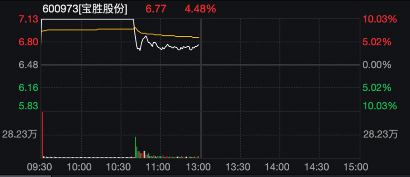 宝胜股份今天上午一度涨停,后开板。此前两个交易日,宝胜股份曾连续收盘涨停。