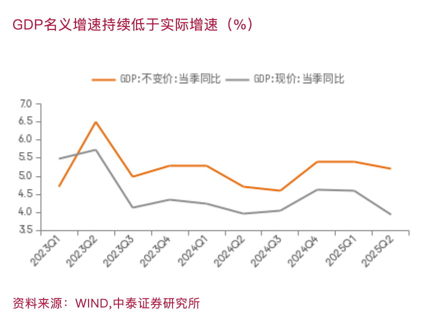 今年上半年,实际GDP同比增长5.3%,其中一季度增长5.4%、二季度增长5.2%,高于5%的全年目标。但从价的角度看,二季度GDP平减指数同比下降1.2%,连续9个季度同比负增,二季度名义GDP仅增长3.9%,供强于需的现象依然存在。