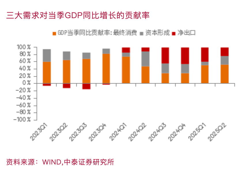 三是出口增速可能放缓。综合考虑美对各国关税豁免期、美关税协议重视转口问题、运输周期、今年圣诞订单和交货时间提前等因素,预计9月起出口增速将有所回落。今年上半年货物和服务净出口对GDP增长的贡献率为31.2%,下半年需要更好发挥内需对经济增长的作用。