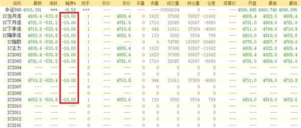 而中证500股指期货(IC)各合约更是罕见地全线跌停。