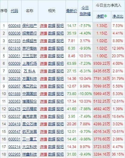此外,在“国家队”托盘的预期下,金融、地产等权重股获得主力大幅净流入。