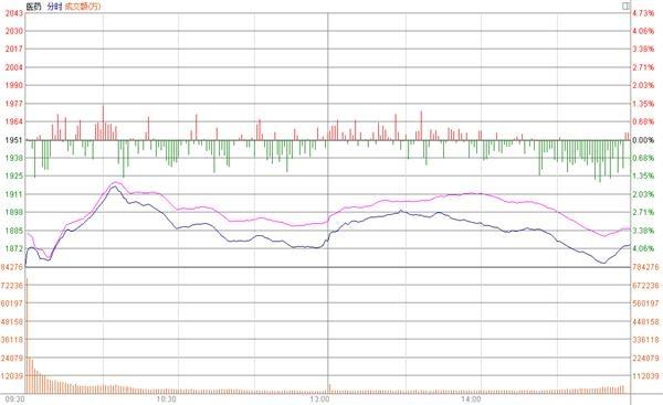 此外,整个医药板块指数今日低开后也迅速拉升,早盘低开4.73%的幅度明显小于大盘指数的跌幅,午后也一度出现拉升,不过,在尾盘,医药指数随着大盘一同再度跳水,最终收跌3.91%,但跌幅依然小于大盘各大指数。