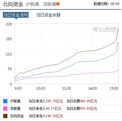 今日的大跌,让素有“聪明资金”之称的北向资金斥巨资抄底,开盘仅6分钟,就净买入逾40亿元。午后开盘仅14分钟,北向资金净买入额就超过了100亿元。而到了尾盘,北向资金更是加速买入,全天净买入额接近200亿元,创去年11月26日以来新高,也是沪深港通开通以来的历史第二高。其中,沪股明显比深股更受青睐。