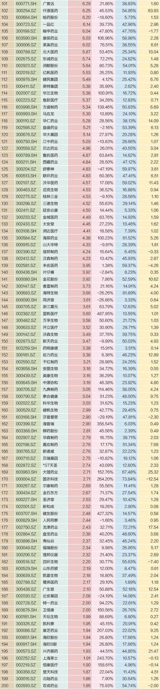 据《投资时报》记者不完全统计,前述名单中涉及到27家A股医药生物上市公司,它们分别为复星医药(600196.SH)、上海医药(601607.SH)、恒瑞医药(600276.SH)、步长制药、华润三九(000999.SZ)、智飞生物(300122.SZ)、同仁堂(600085.SH)、天士力(600535.SH)、华北制药(600812.SH)、天坛生物(600161.SH)、吉药控股(300108.SZ)、大庆华科(000985.SZ)、景峰医药(000908.SZ)、奥赛康(002755.SZ)、仙琚制药(002332.SZ)、亚太药业(002370.SZ)、国药股份(600511.SH)、江中制药(600750.SH)、辰欣药业(603367.SH)、安图生物(603658.SH)、菲利华(300395.SZ)、卫光生物(002880.SZ)、太安堂(002433.SZ)、北大医药(000788.SZ)、同济堂(600090.SH)、沃森生物(300142.SZ)、恒康医疗(002219.SZ)。
