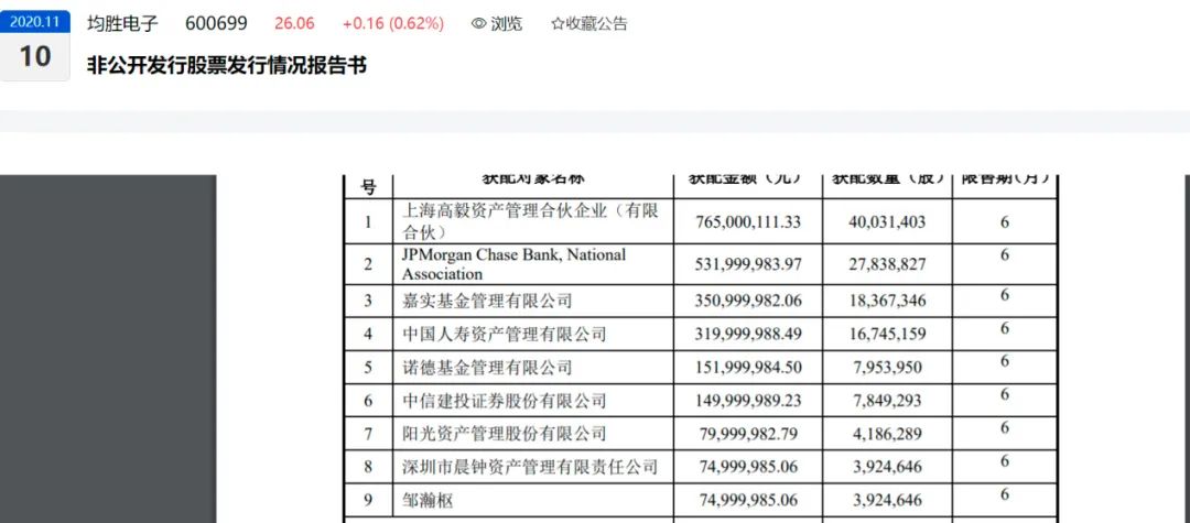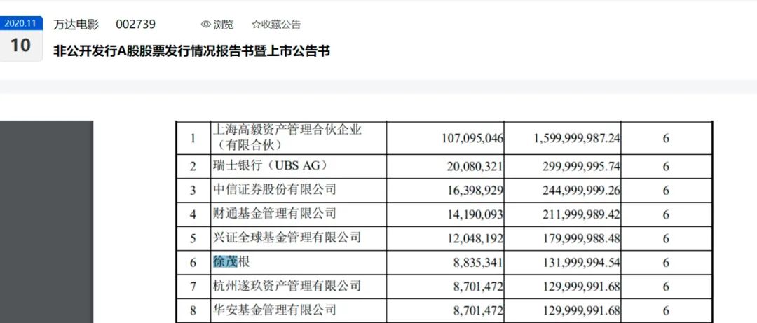 11月9日晚间,万达电影、均胜电子不约而同发布了非公开发行股票结果情况报告,在机构云集的认购对象名单中,分别出现了徐茂根、邹瀚枢两位牛散,各自出资1.32亿元、7500万元成了公司重要股东。