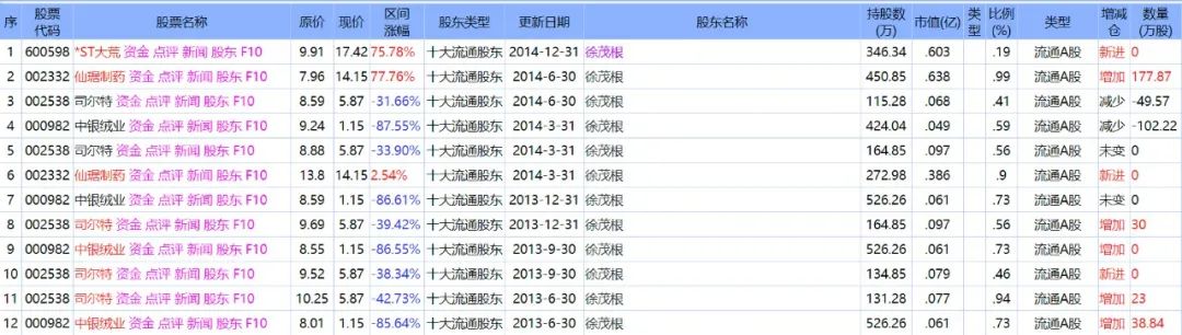 有意思的是,此前在二级市场异常活跃的两位大户,好多年未在十大股东榜单上露面了。徐茂根的名字出现在股东榜单上,还是在2014年末。
