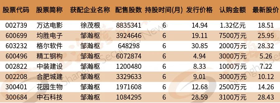多年前,邹瀚枢在定增市场也是“常客”,但在2015年上半年参与莱茵生物、乐凯胶片的定增项目之后,再未出手。二级市场上,邹瀚枢“金盆洗手”的年份定格在2016年,直到今年才重出江湖。