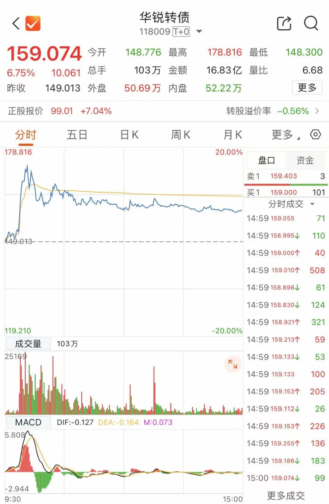 1月28日,是华锐转债的最后交易日。华锐转债1月27日收盘价为159.074元/张,如果投资者不及时操作,可能亏损超36%。此前,英特转债部分持有者就因未及时操作导致亏损超34%。