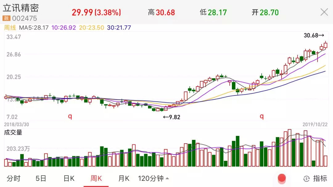 早在半年报中,立讯精密便预告了三季报业绩情况。最新公布的三季报显然已经超过预期,受此影响,立讯精密股价水涨船高。事实上,立讯精密本身已叠加5G概念、华为概念、苹果概念、消费电子等多重热门科技题材,在千亿级科技龙头的带动下,A股市场科技类题材再次受到提振。