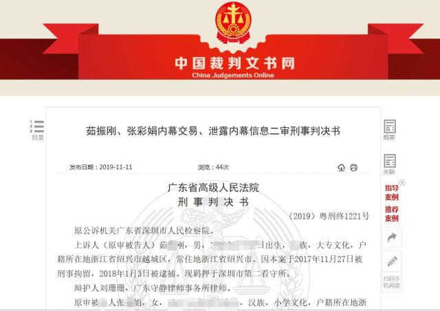 一审法院深圳市中院指出,被告人茹某刚、张某娟作为内幕信息知情人的近亲属,违反法律规定,利用其非法获取的内幕信息从事证券交易,情节特别严重;被告人张彩娟还将非法获取的内幕信息泄露给他人,导致他人利用该信息从事相关交易,二人的行为均触犯刑法规定,依法应当追究刑事责任。茹某刚构成内幕交易罪,被告人张某娟构成泄露内幕信息、内幕交易罪。