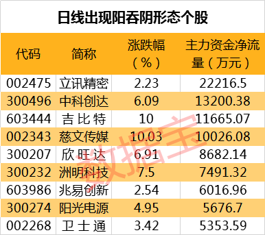 最新数据显示,两市共有74只个股日K线出现阳吞阴形态,当天涨幅最大的是鲁商发展、中航三鑫、慈文传媒,涨幅分别为10.04%、10.04%、10.03%。