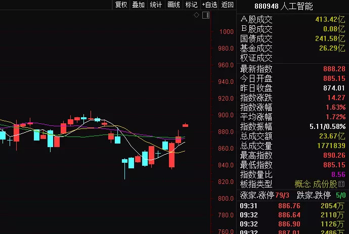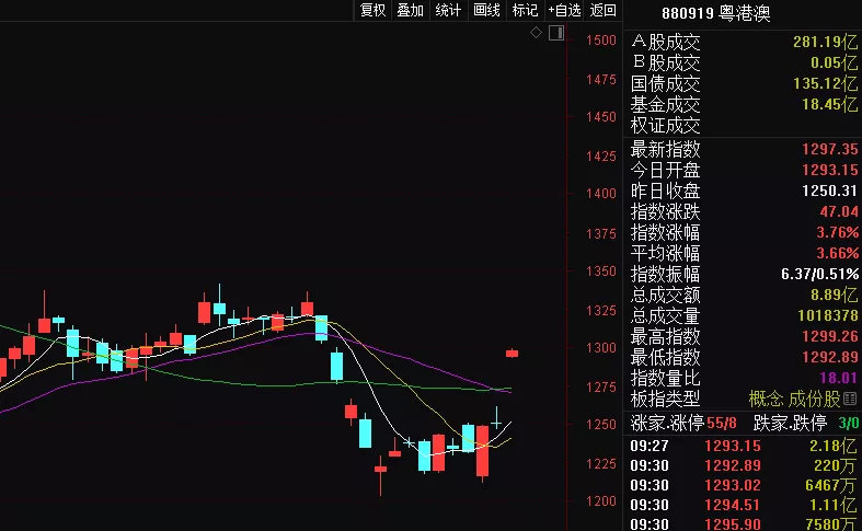 此外,粤港澳指数强势高开,截止发稿涨逾3%,5G、人工智能概念也涨幅居前。