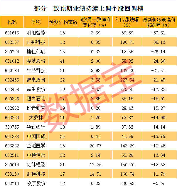 其中35只股票今年创出了历史新高,占比超过4成。有的个股回调幅度较大,包括明阳智能、正邦科技等个股最新价较历史最高价折价均超过30%,捷佳伟创、隆基股份、生益科技、沪电股份等个股回调幅度均超过20%。