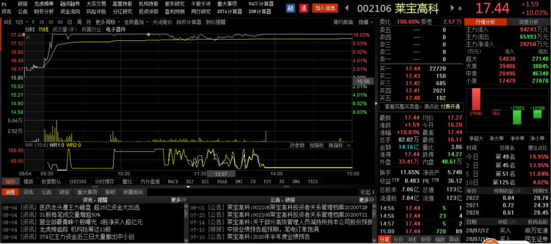 8月4日,受上述消息刺激,科森科技、莱宝高科涨停、春秋电子大涨6%。