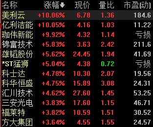 周二午后,太阳能概念股大幅飙涨。截至收盘,美利云、亿利洁能、珈伟新能、ST猛狮涨停,锦富技术、雄韬股份、科士达等多股涨幅不俗。