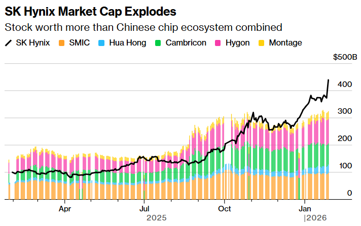 AI浪潮重塑亚洲科技版图:存储“超级周期”下 韩国芯片双雄合并市值即将首超阿里与腾讯