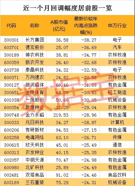 回调幅度最大的是长方集团,该股于6月24日早盘高开创年内高点后闪崩,当天股价跌停,次日再度跌停,近几个交易日股价仍继续下挫,与年内高点相比,已累计回调38.27%。德宏股份此前因叠加稀土永磁及送转概念备受资金炒作,6月12日盘中股价涨停创年内高点后闪崩,当天股价下跌6.64%,最新股价较年内高点已回调36.69%。