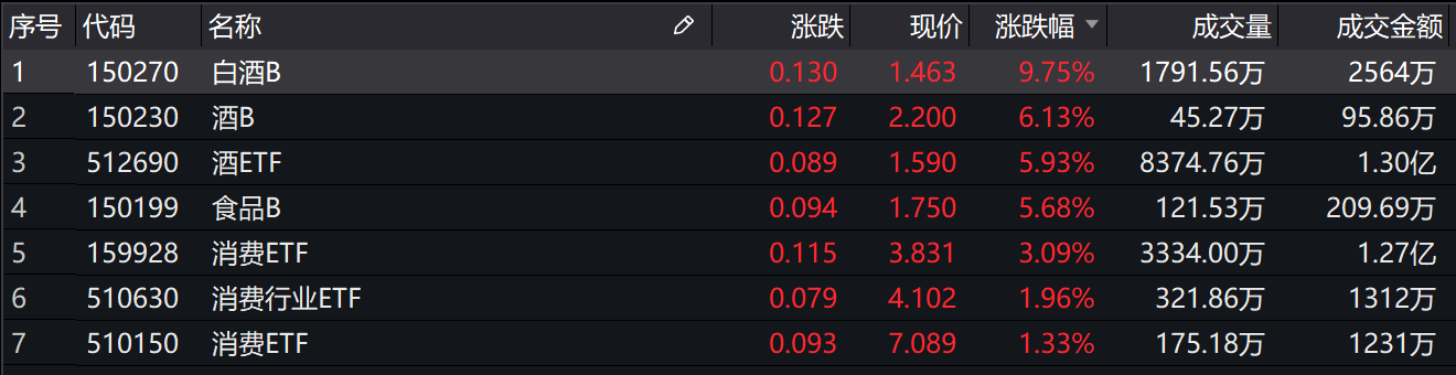上述相关主题的场外基金有:国泰国证食品饮料(160222.OF)、鹏华中证酒(160632.OF)、招商中证白酒(161725.OF)、鹏华中证800地产(160628.OF)、招商沪深300地产(161721.OF)、南方中证房地产ETF联接A(004642.OF)。
