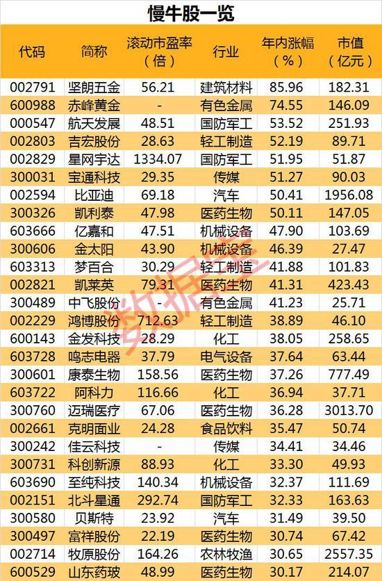 慢牛股名单来了。