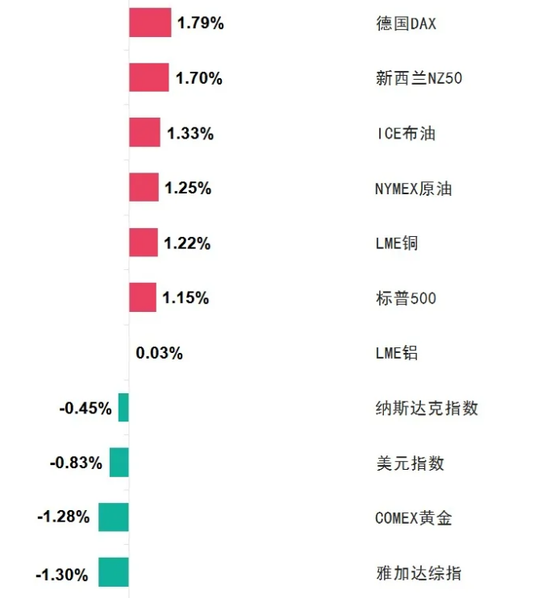 因周二的暴涨,晚间英、法、德等欧洲重要市场和美三大股指表现差异较大,整体涨幅较亚太市场也弱的多。截止收盘德国DAX上涨1.79%,法国CAC40上涨4.47%,英国富时100上涨4.45%,美三大股指也有分化,道指上涨2.39%,标普500上涨1.15%,而纳斯达克则下跌0.45%,较周二大反攻有天壤之别。