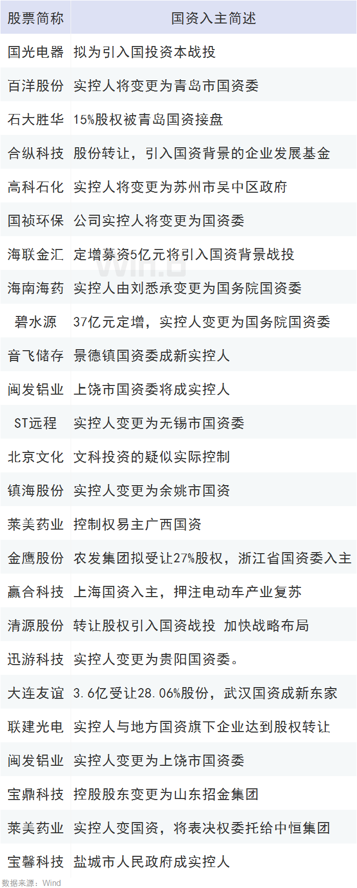 Wind数据显示,2020年以来,国资入股至少已有25起,国资进场买入坚定。具体名单如下: