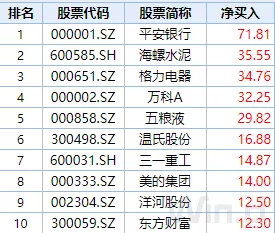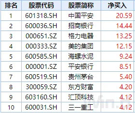 从净流入前十的个股来看,最近7日,北向资金净流入前十榜中,有6席为沪股通个股占据。而近三个月的北向资金净流入前十榜中,有8席都是深股通股票占据。