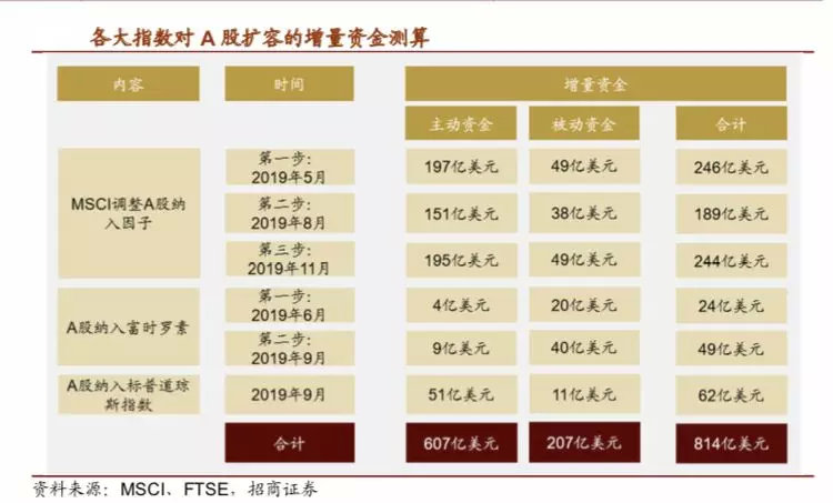 标普道琼斯指数纳入A股能为A股带来多少增量资金?增量资金分为主动增量资金和被动增量资金,其中,被动增量资金大概率会在指数生效日入场,主动资金来不来,什么时候来都不一定,我们现在只看被动增量资金。