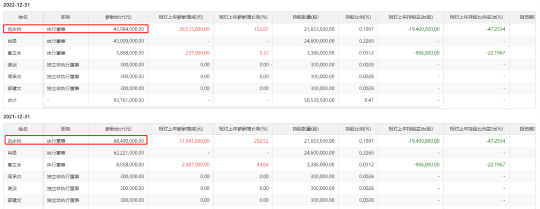 不过恒大汽车糟糕的业绩并没有影响刘永灼高昂的个人薪酬。2021年,他的薪酬为6849万元,而在2022年他拿到了4398万元。