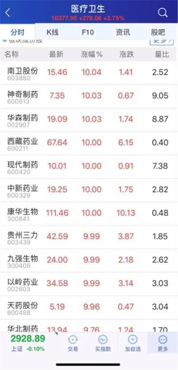 医药板块成为最大亮点,抗病毒、眼科、中药、疫苗和血液制品板块均表现突出。在抗病毒板块中,神奇制药和以岭药业涨停,东阳光上涨近6.23%;在疫苗板块中,西藏药业和康华生物等个股涨停;在血液制品板块中,华兰生物和科华生物大涨超过7%。