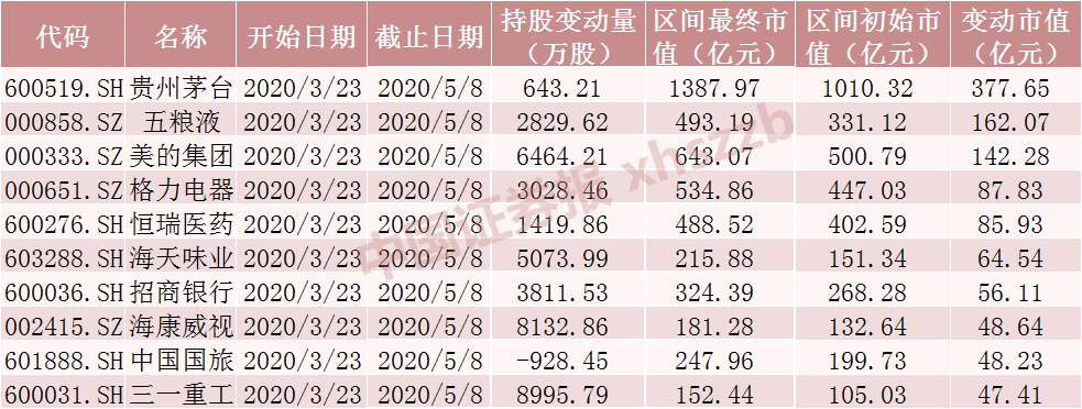 除这些个股期间均取得上涨外,北向资金对这些个股也进行了明显的加仓,如市值增加额最大的贵州茅台被加仓643.21万股,3月24日以来累计上涨29.01%。在市值增加额前十的个股中,仅有中国国旅被减仓928.45万股。