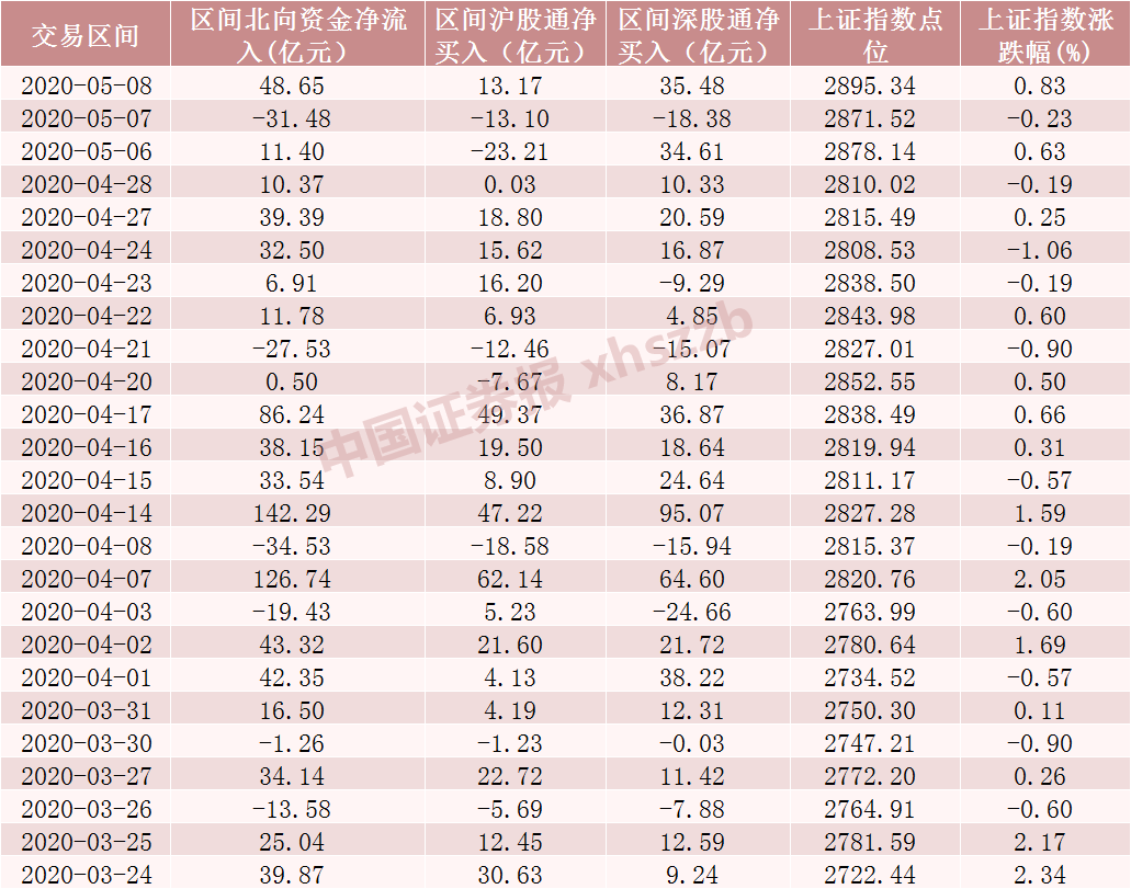 3月24日以来北向资金流向情况