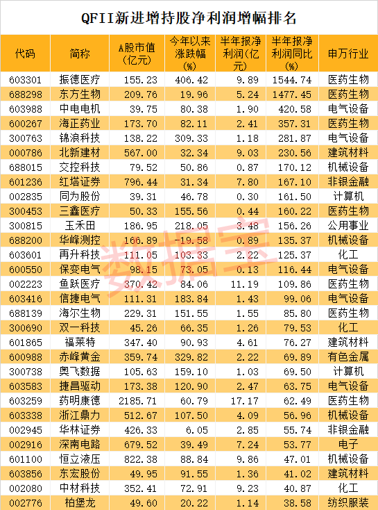 15只QFII新进增持股业绩翻倍
