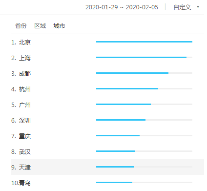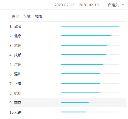 按图索骥,证券时报 e公司记者以周为单位查询“股票开户”排行榜,发现武汉跃居榜首的时间定格在2月12日-2月19日。值得一提的是,两周前,即1月29日-2月5日,武汉的搜索排名仅位列第8。