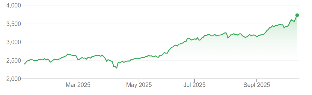 韩国综合股价指数(KOSPI)今日开盘之后涨幅就不断扩大,截至发稿涨幅已经突破2%,达到3732.20点,创下历史新高。年初至今,该指数已经累计上涨了55%。