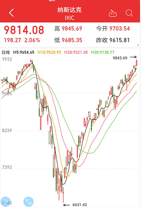 美股迎来狂欢,标普500指数收涨2.62%。道琼斯工业平均指数涨800多点,收涨3.15%,纳斯达克综合指数收涨2.06%,盘中一度刷新历史记录最高点9845.69。