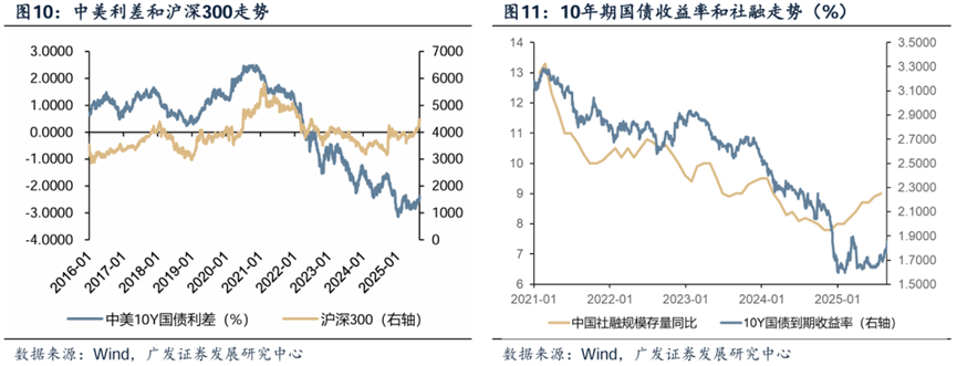 货币政策空间打开:中美利差收窄减轻人民币汇率压力,中国央行降准/降息操作空间扩大,利于内需刺激和基本面回暖。