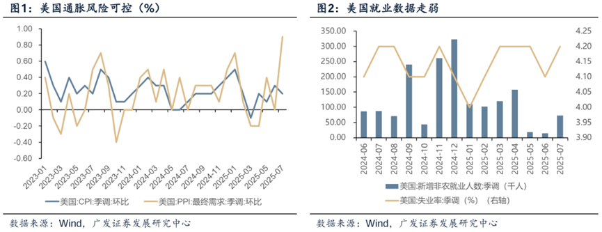 基本面走弱:7月非农就业数据超预期下滑,核心通胀(如服装、娱乐商品)环比增速回落,显示关税通胀压力有限。尽管7月PPI环比+0.9%超预期,但PCE指数环比0.2%符合预期,通胀风险整体可控。
