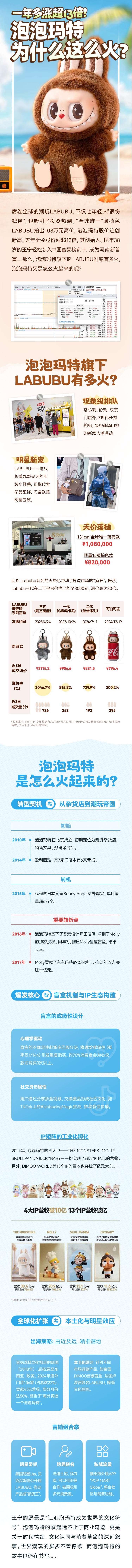 “全球唯一”薄荷色LABUBU拍出108万元高价,其创始人、现年38岁的王宁轻松步入中国富豪榜前十,成为河南新首富.....那么,泡泡玛特旗下IP LABUBU到底有多火,泡泡玛特又是怎么火起来的呢?