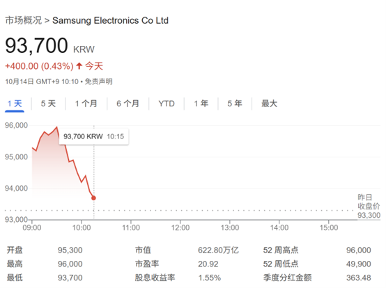 在好于预期的初步业绩公布后,三星股价应声上涨,目前涨0.43%,报93700韩元,盘中一度上涨逾3%,创下历史新高。今年以来,三星股价已经累计上涨约75%。