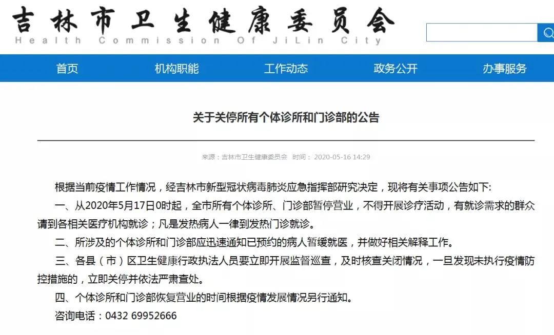 一、从2020年5月17日起,全市所有个体诊所、门诊部暂停营业,不得开展诊疗活动,有就诊需求的群众请到各相关医疗机构就诊;凡是发热病人一律到发热门诊就诊。