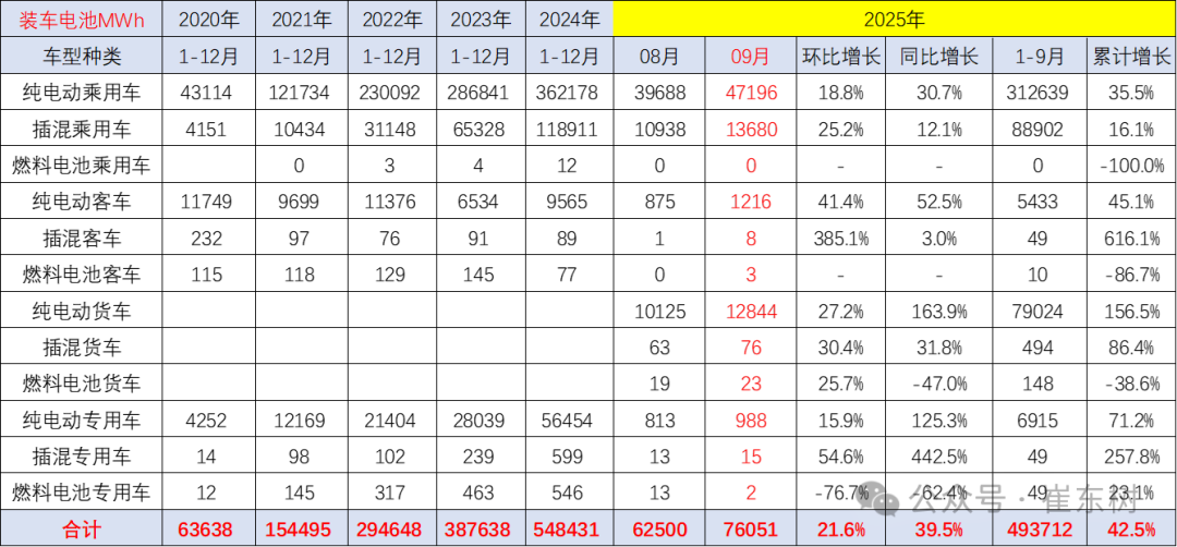 2025年9月的电池装车增长达到39.5%,其中商用车增长较强,尤其是9月的纯电动货车猛涨164%,而插混货车增长32%。