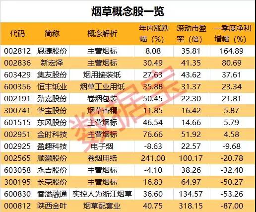 “烟草第一股”单日暴涨40% A股概念股名单来了 龙头已连拉3涨停